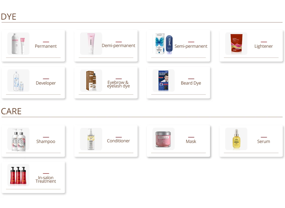 מוצרים עיקרייםצבע שיער, טיפול שיער, שמן שיער